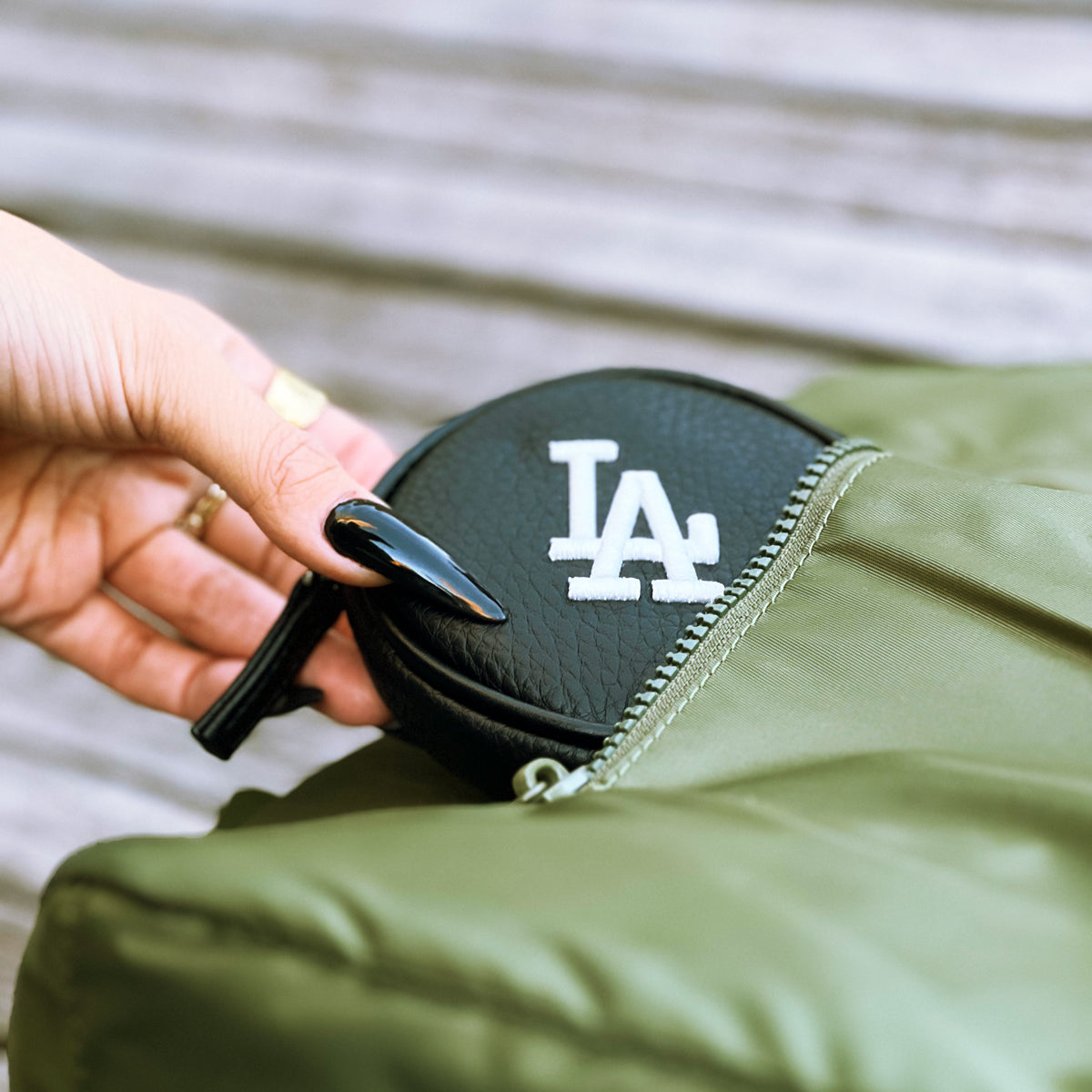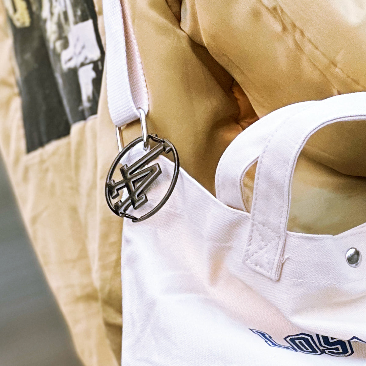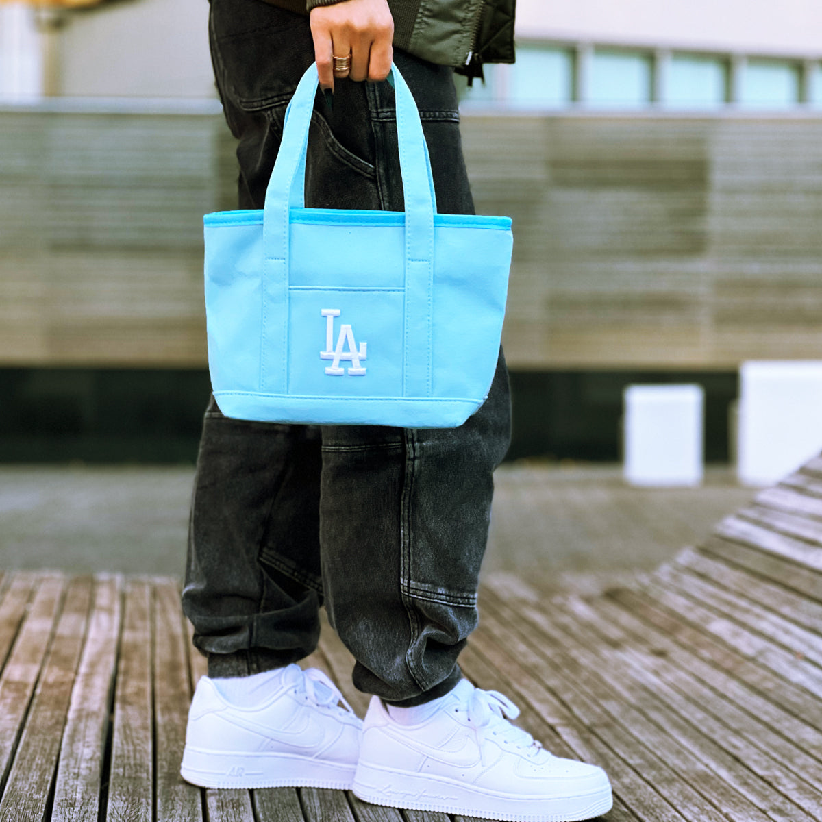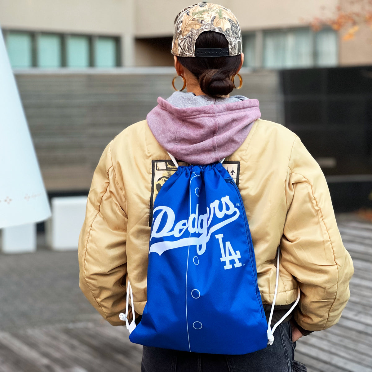 LAのロゴとチームカラーであるドジャーブルーを基調としたシンプルなデザインで、普段使いから旅行や軽い外出までどんな場面でも西海岸を感じさせてくれる。