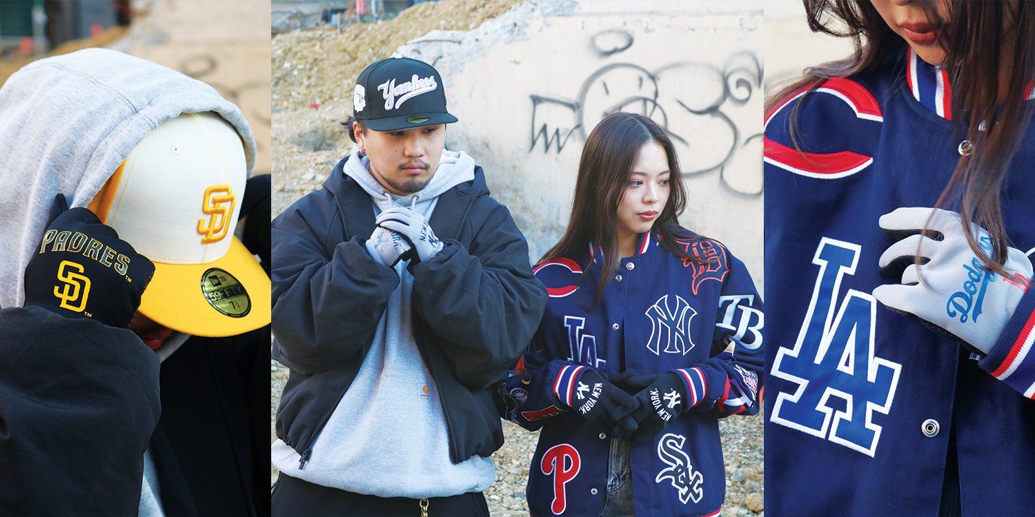 MLBのキャップやアパレルなど関連アイテムとの組み合わせも抜群。