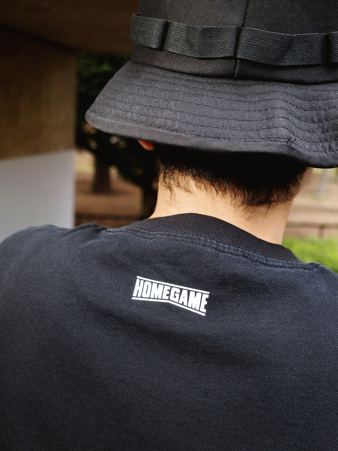 背面にはHOMEGAMEのロゴがさりげなくプリントされており、Tシャツのボディには程よく抑えたWASH加工が施され、柔らかな雰囲気のアイテムとなっています。