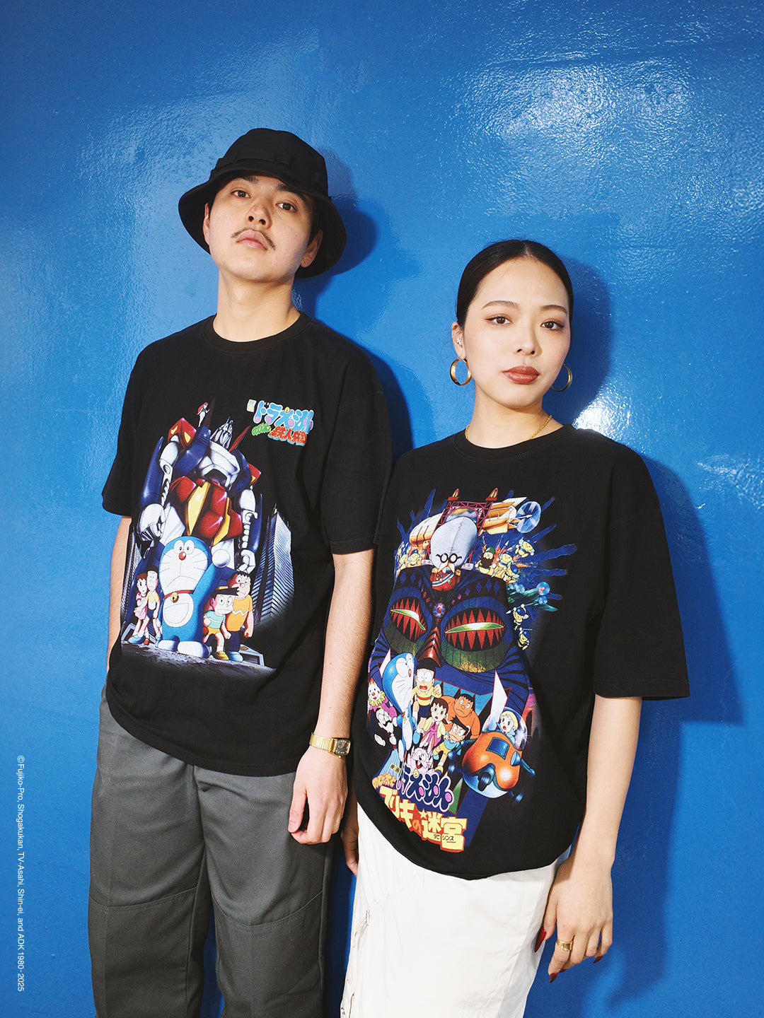ドラえもんの歴代映画43作品のポスターをモチーフにした臨場感あふれるビジュアルをフロントに大胆にプリント。