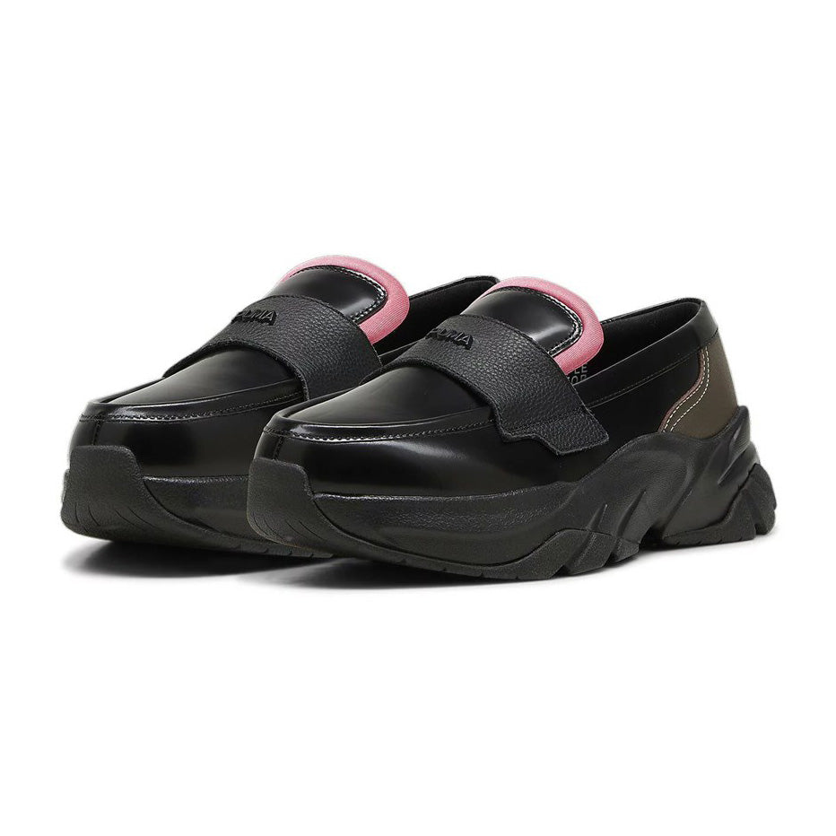 今回のシューズはPUMAの人気モデル、厚底スニーカー「ソフィア」のアッパーをローファーデザインに仕上げた一足。