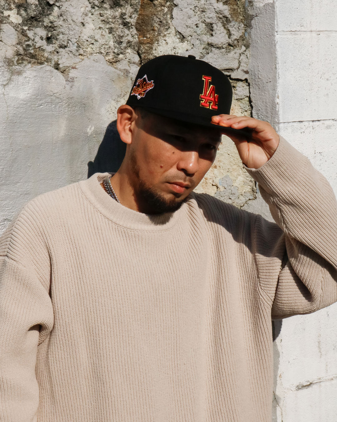 ブラックを基調に、フロントにはLAロゴを立体刺繡。