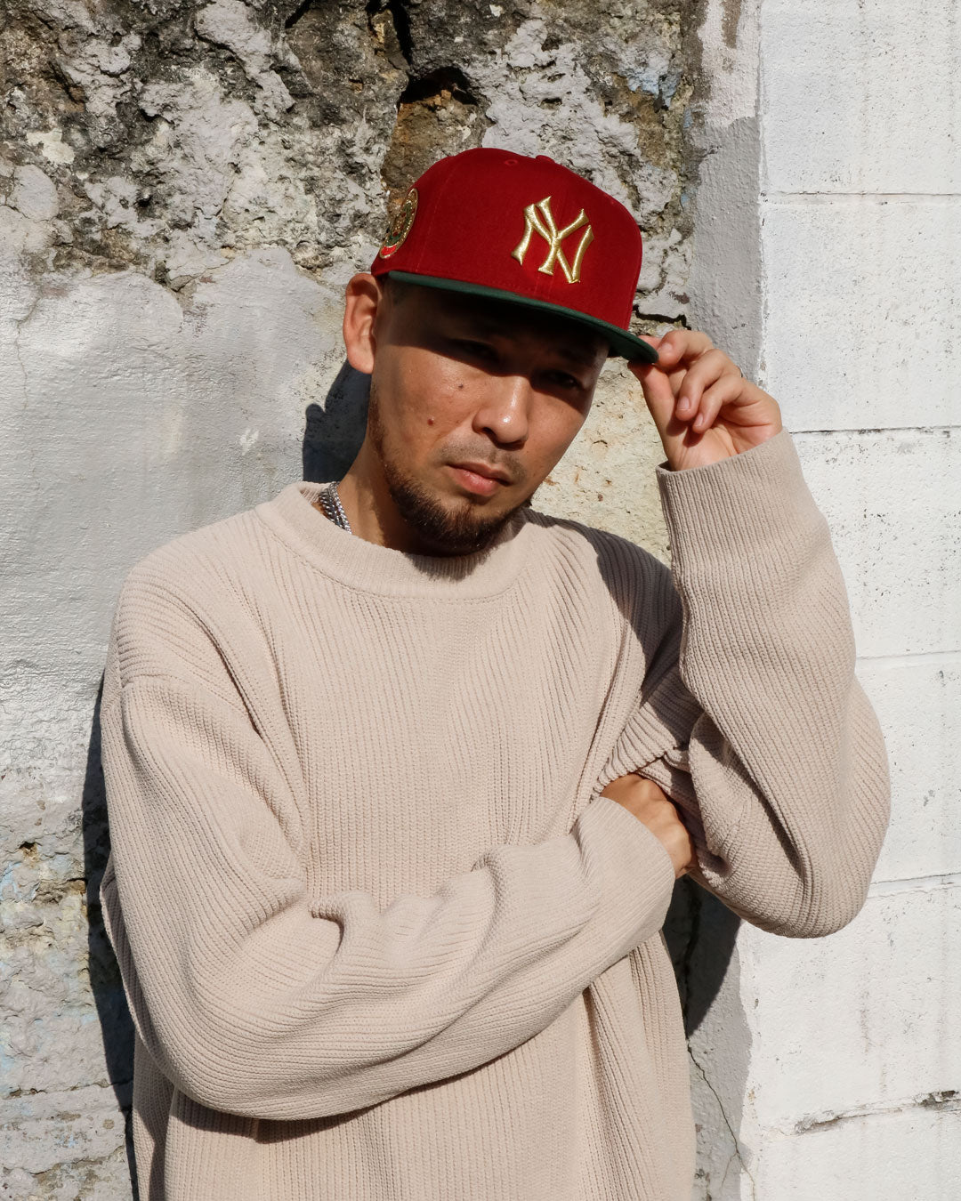 クロームホワイトのクラウン、カーディナルのバイザーを組み合わせた2トーン仕様。