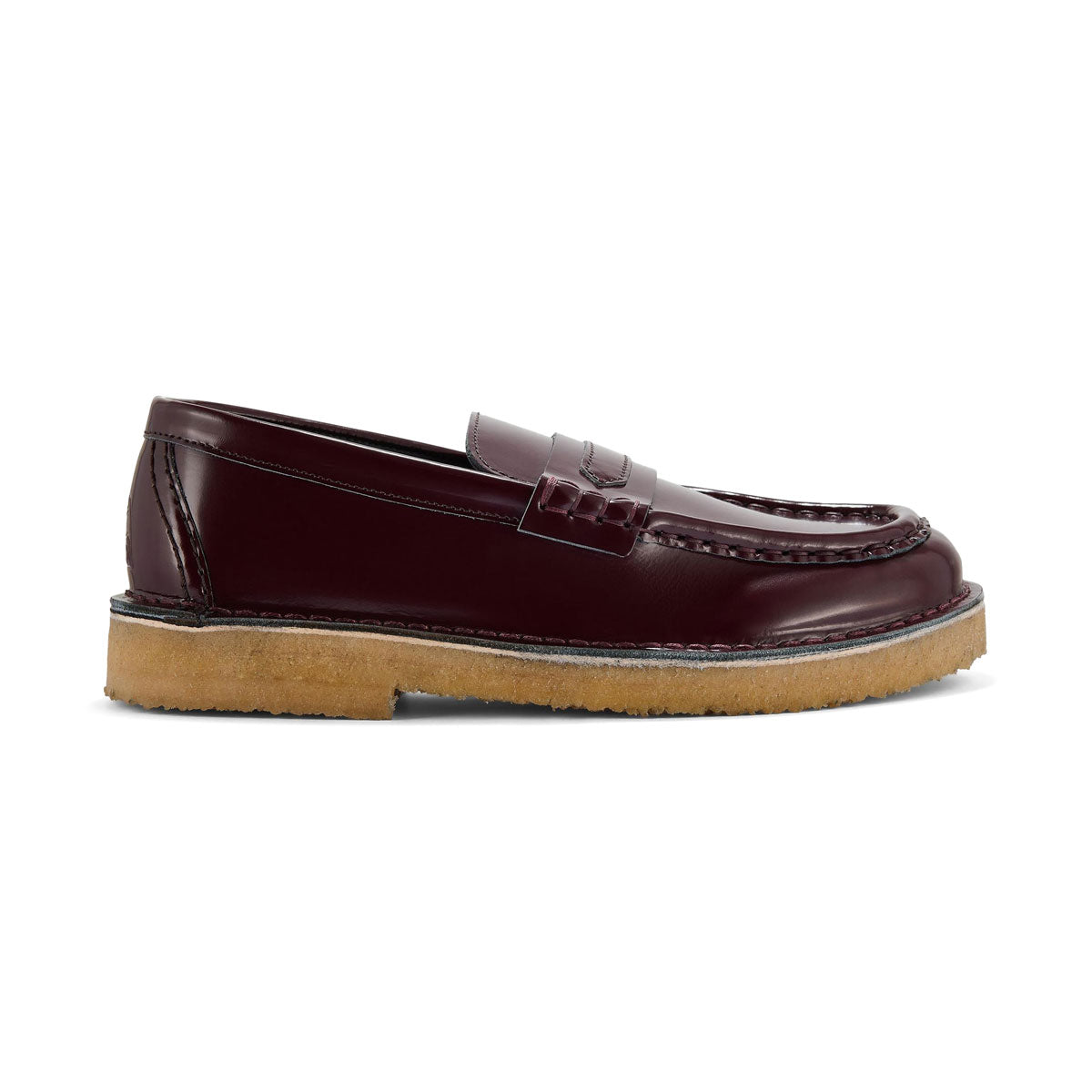 幅広のシェイプと洗練された光沢のあるレザーが特徴のローファー。