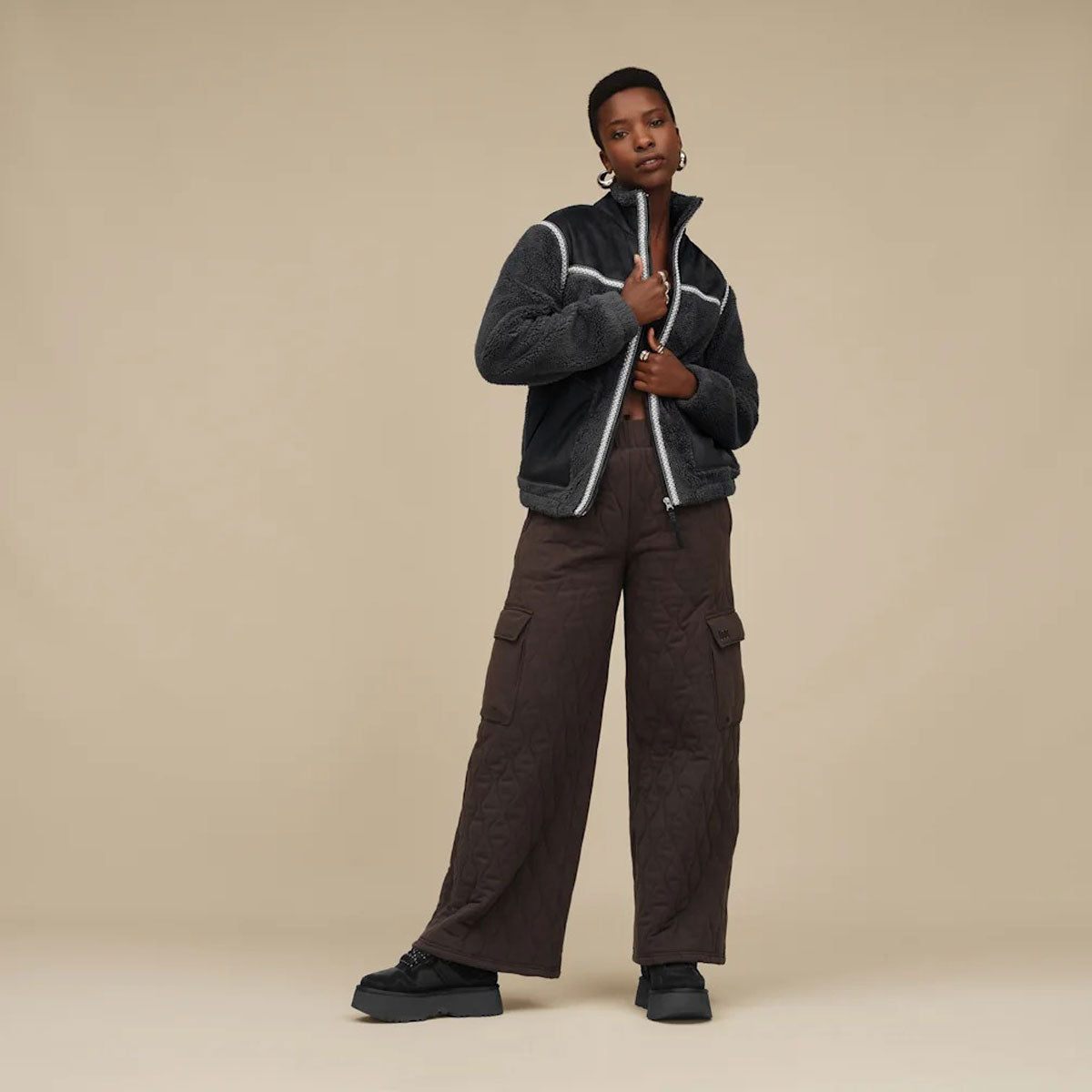 人気のLowmelスニーカーをプラットフォームスタイルにアップデートしたAstromel(アストロメル)。スエード、ナイロン、再生テキスタイルのアッパーを採用し、ツインシームのディテールや約5cmの厚底プラットフォーム、クッション性に優れたEVAのフットベッドがUGG®のルック&フィールを表現し、クラシックスニーカーの要素をアレンジし進化させた全く新しいデザインでありながらも、UGG®らしいスタイルに仕上げています。