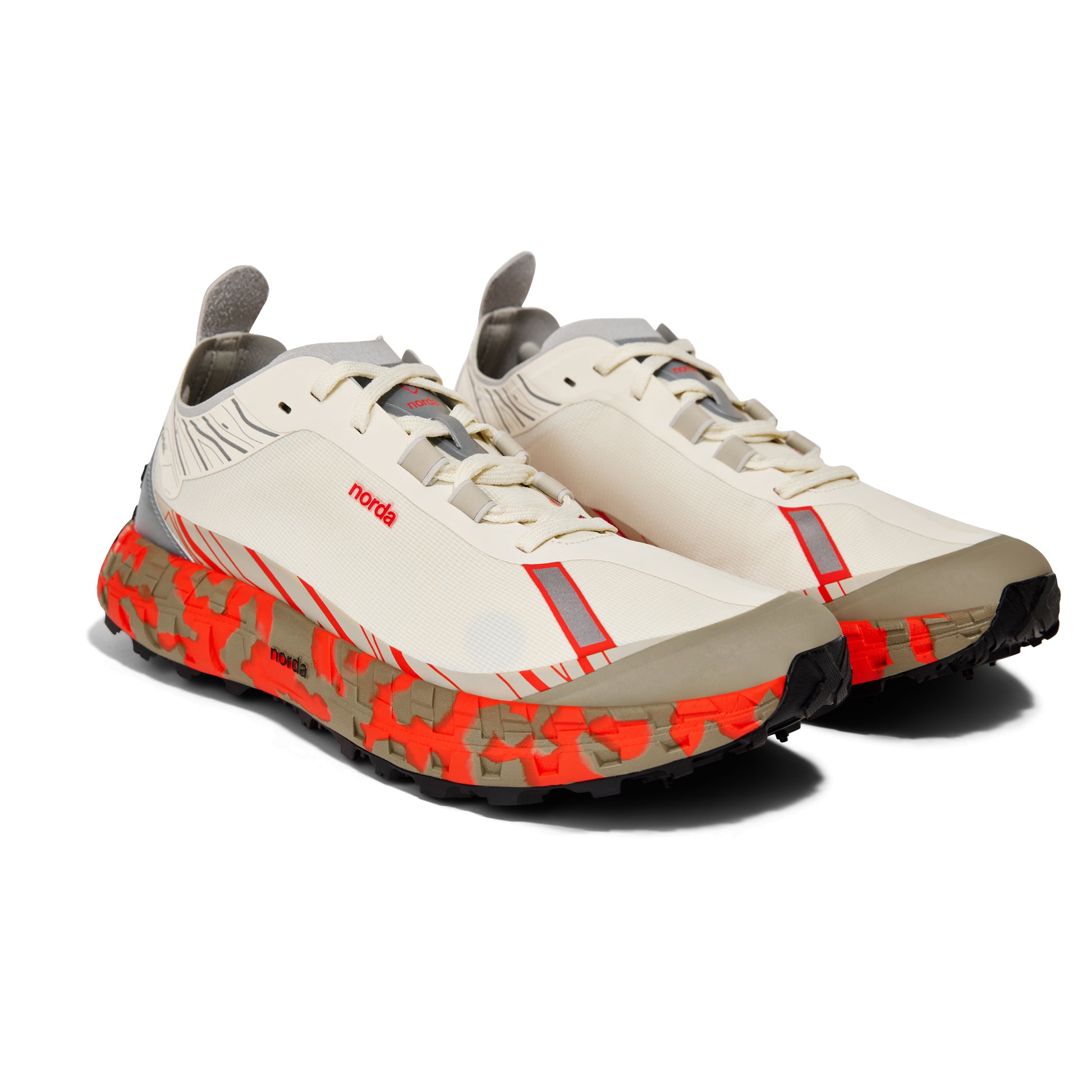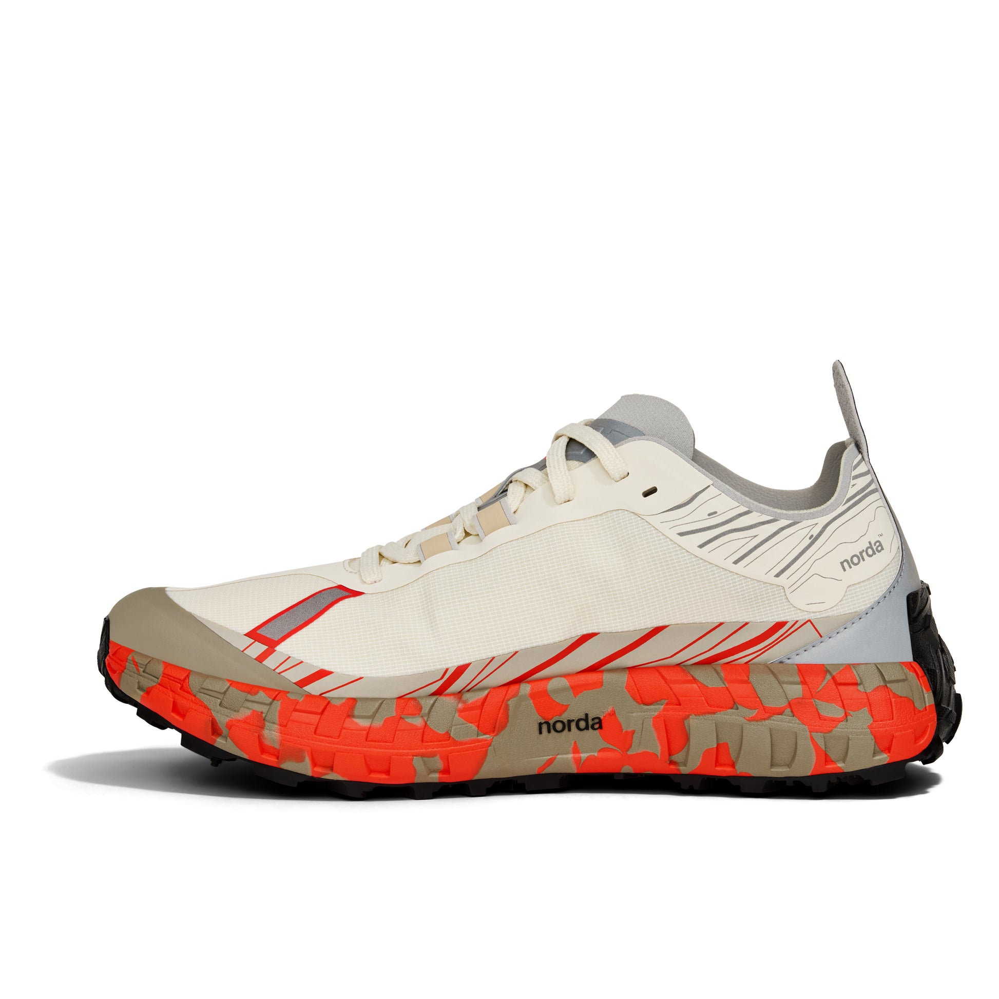 「Vibram/ビブラム」社と共同開発した最高峰のクッション性と耐久性を誇る"norda x Vibram専用ソール"を搭載し、オフロードタイヤを想起させる力強い5mmラグを流麗なラインでまとめた非常に個性的な一足。