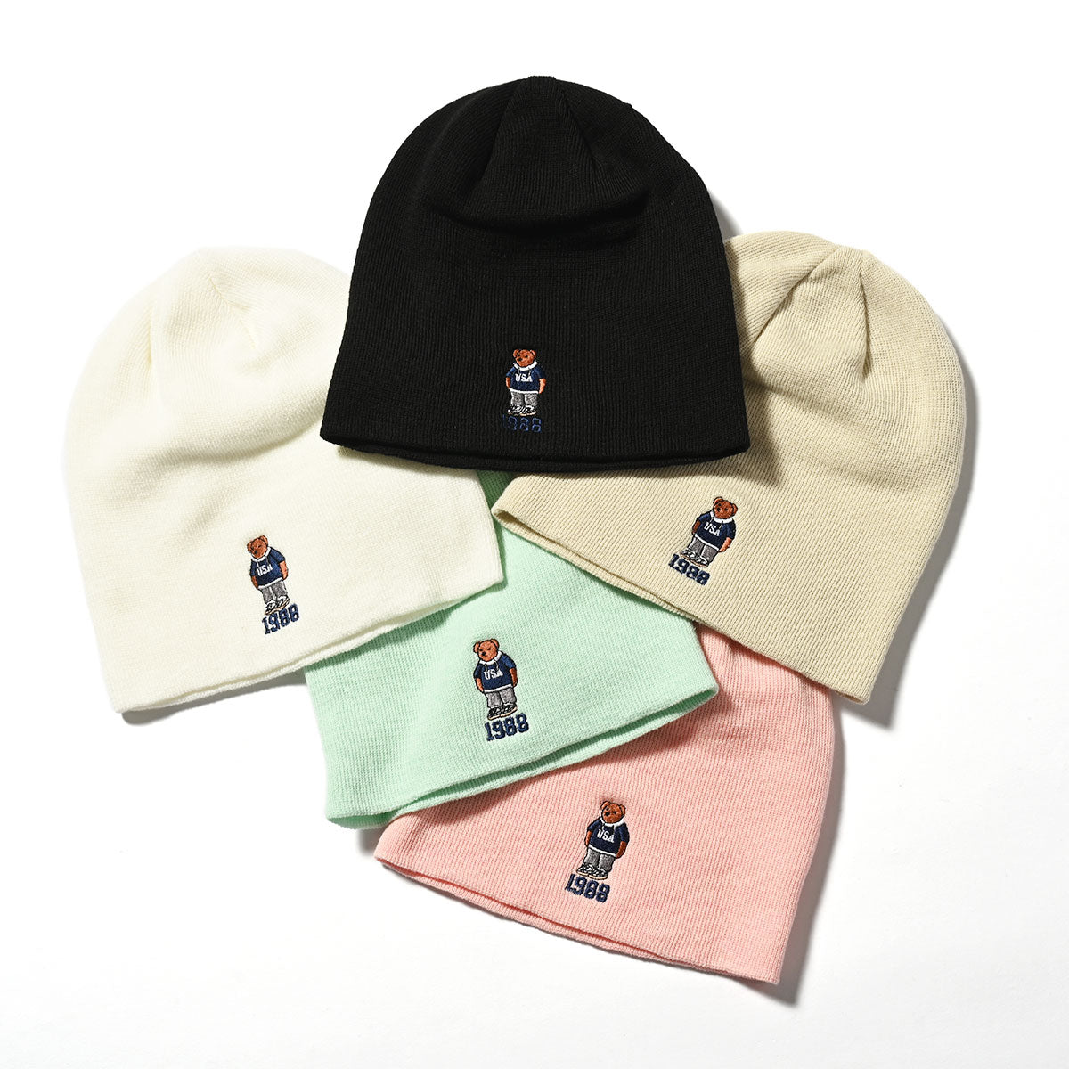 A beanie featuring the iconic bear design.