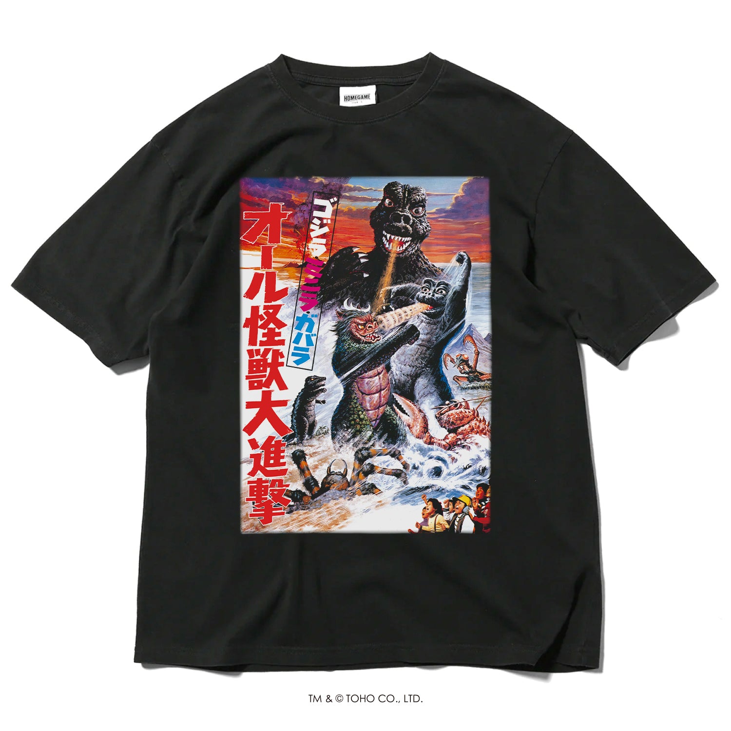 【受注予約:12月下旬頃より順次発送】ゴジラ | HOMEGAME 1969 ゴジラ・ミニラ・ガバラ オール怪獣大進撃 TEE