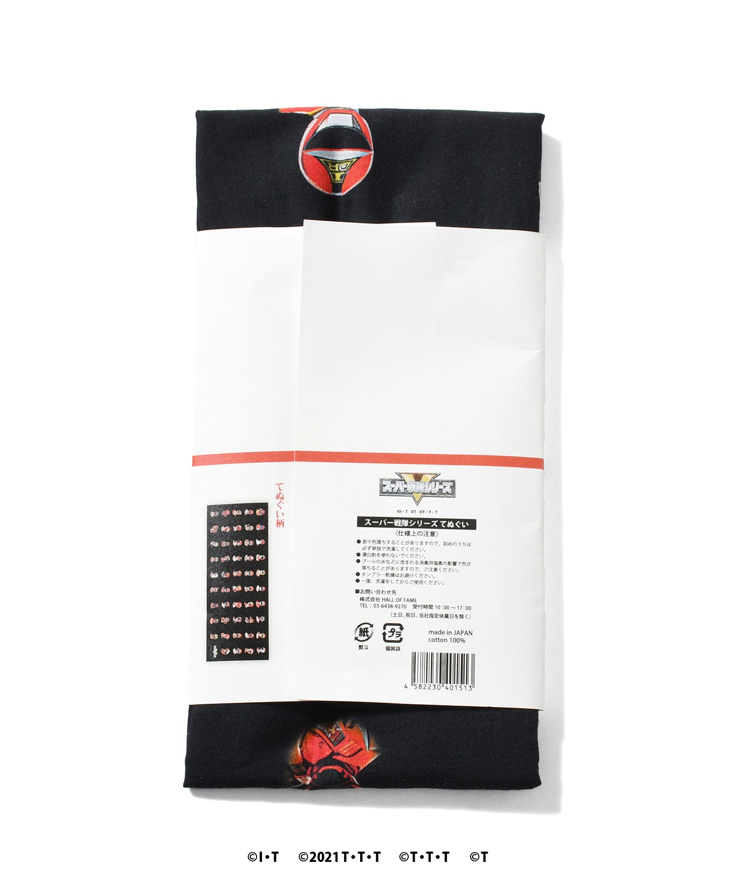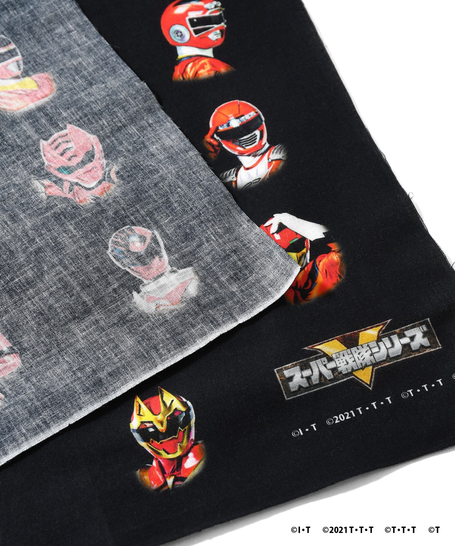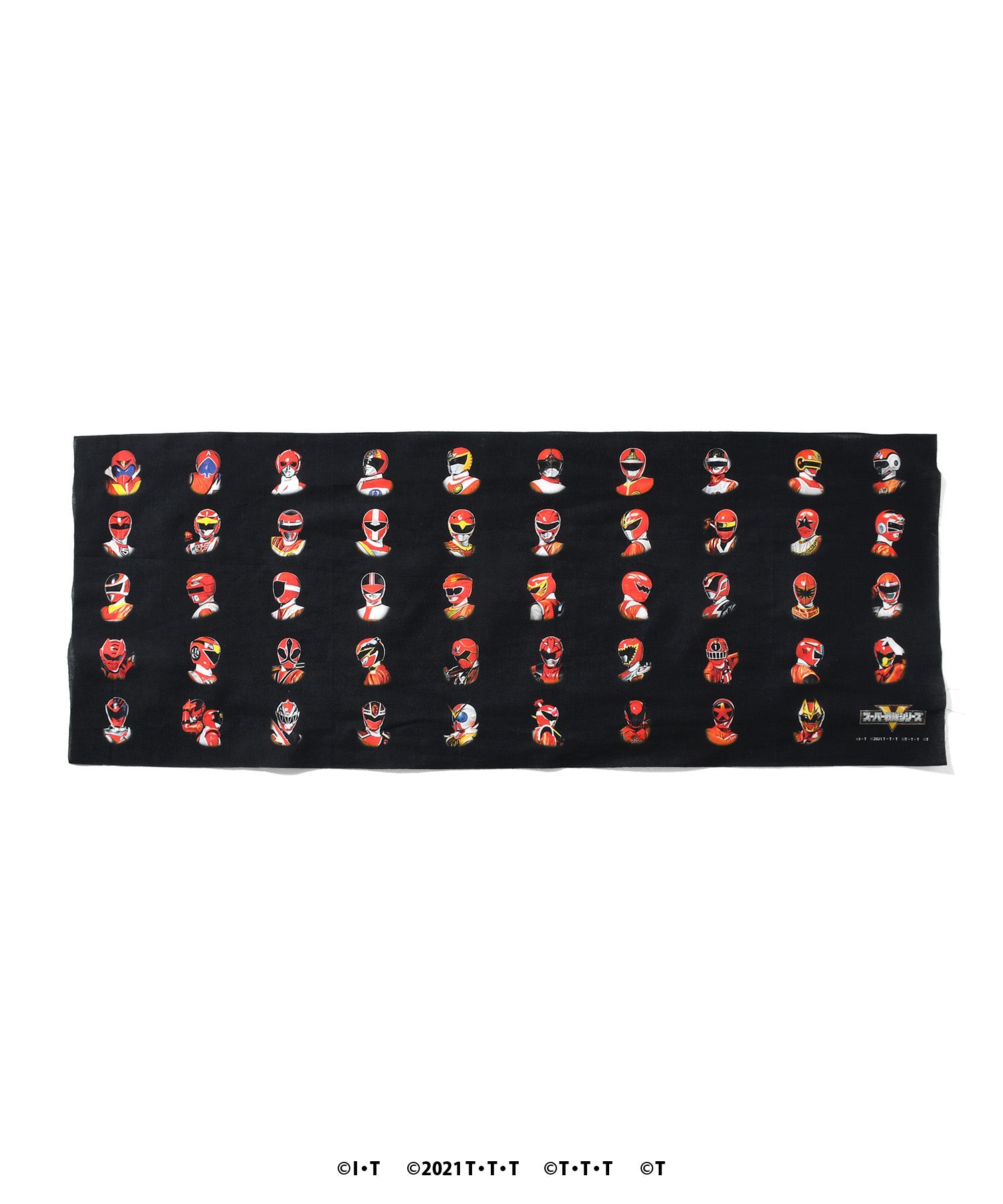 スーパー戦隊シリーズ49作品より、歴代レッドを大胆にデザインした伝統的な和手ぬぐい。