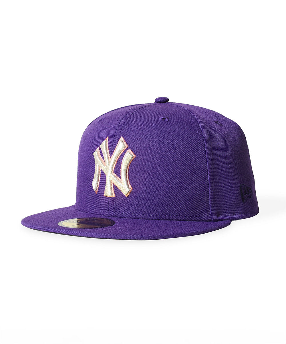 ディープパープルを基調に、フロントにはヤンキースのモノグラムロゴを立体刺繍。