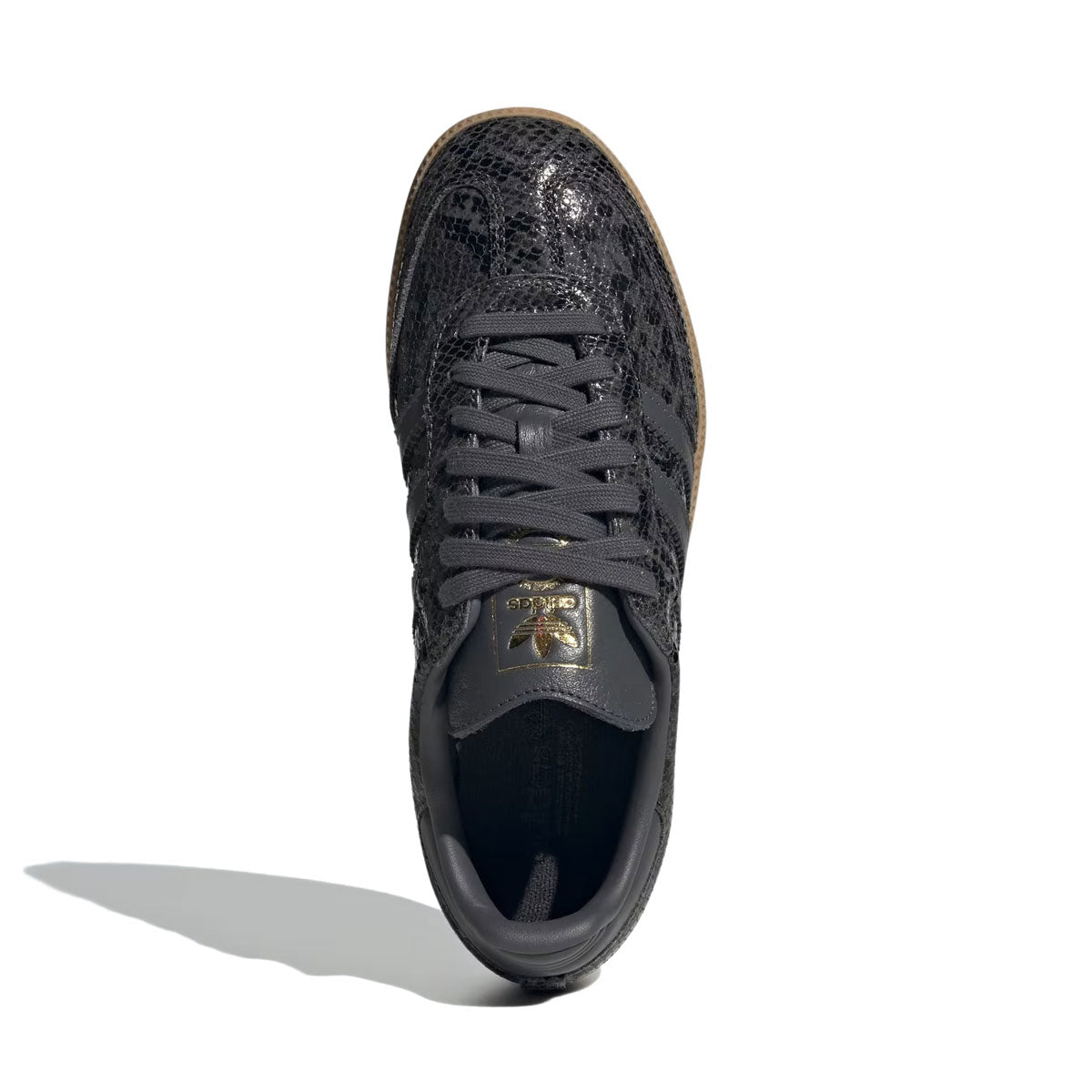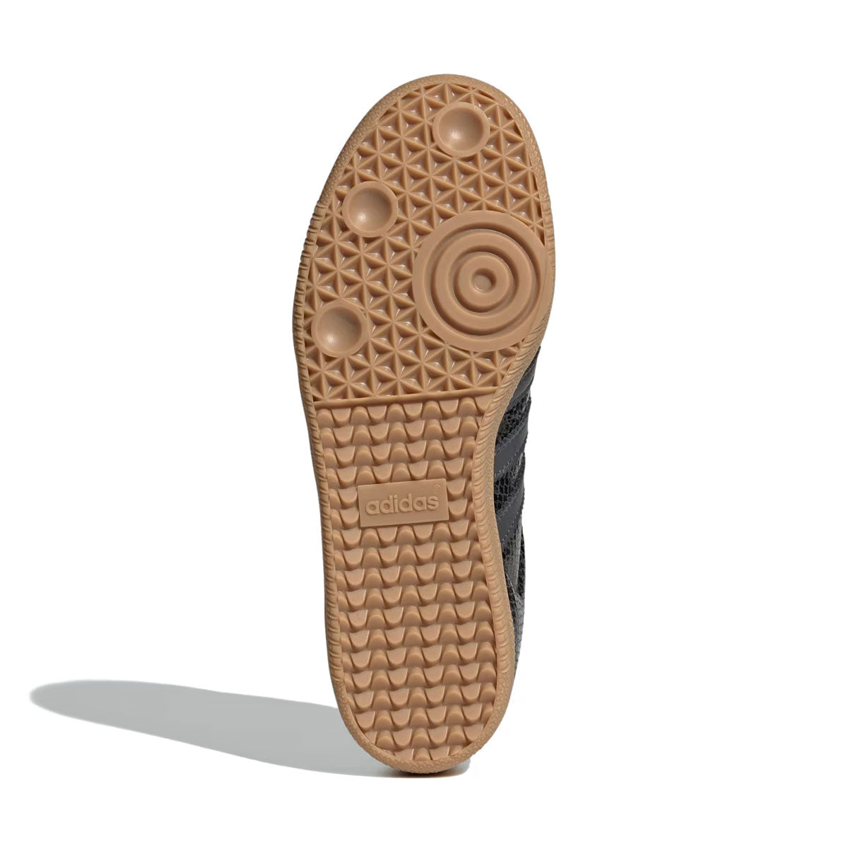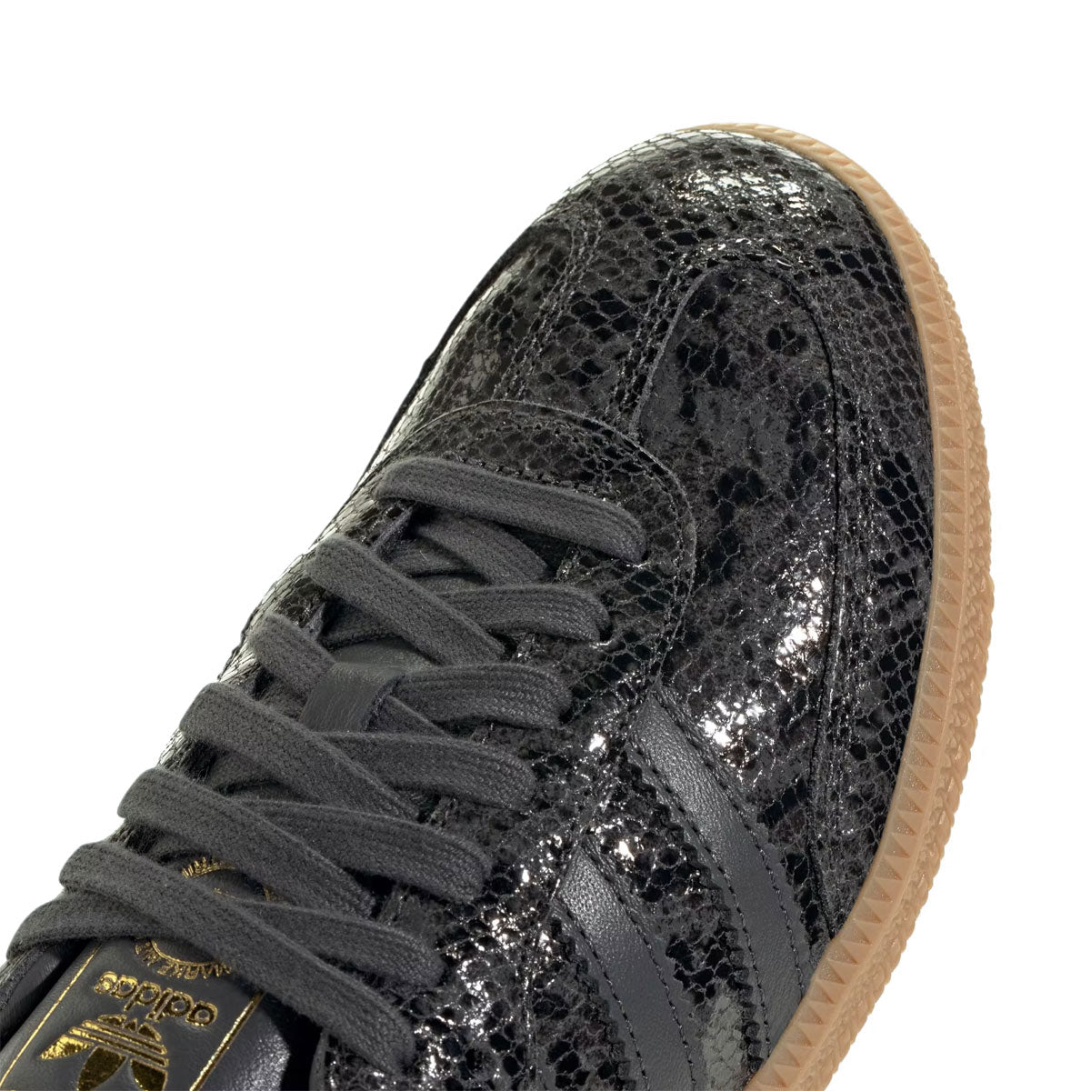 スネークスキンのようなアッパーが目を引くサンバシューズ。