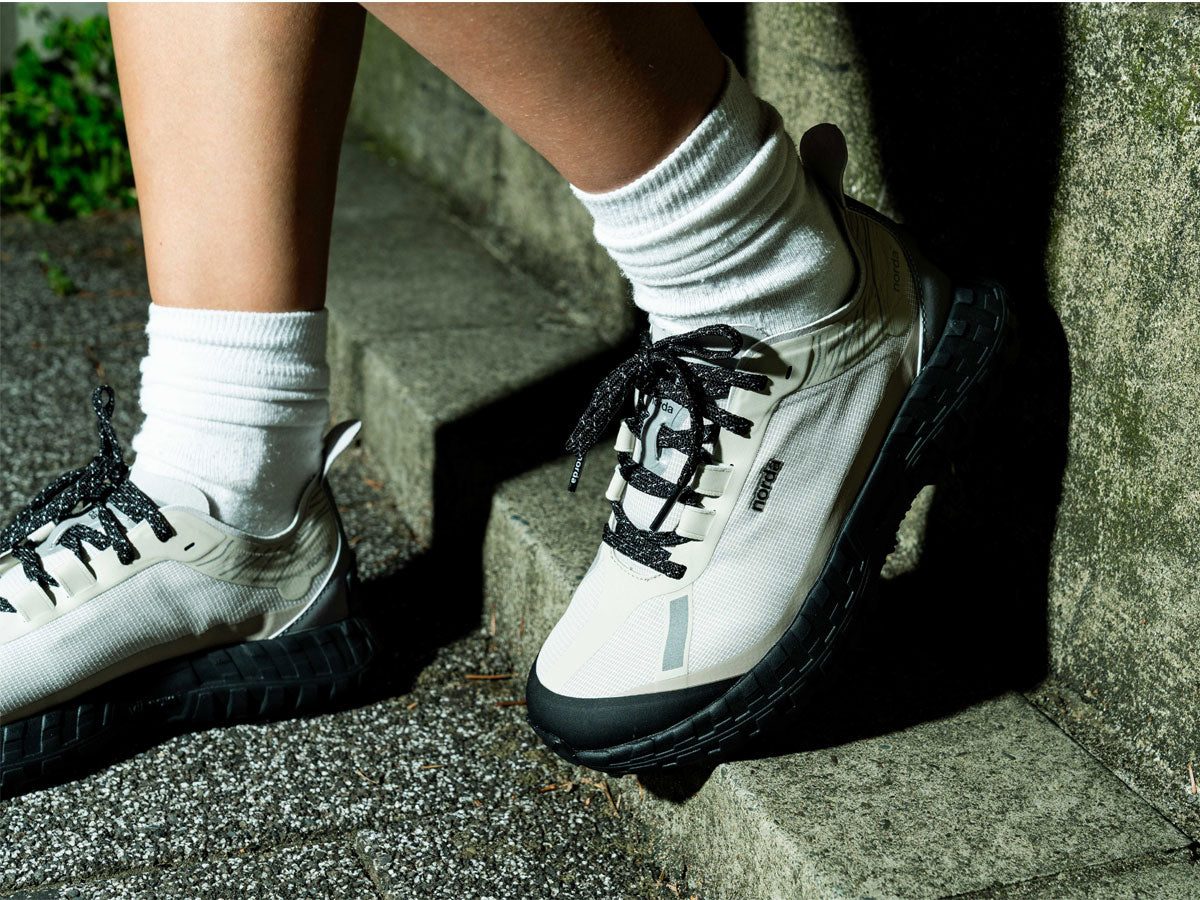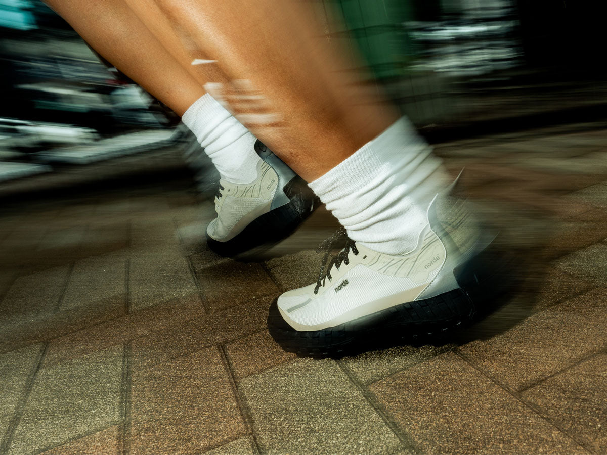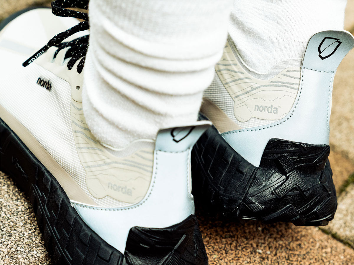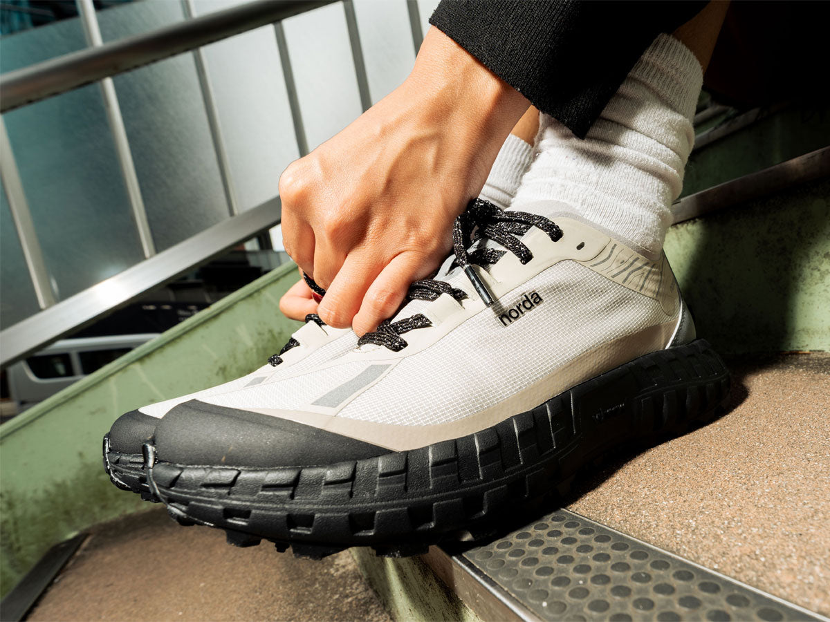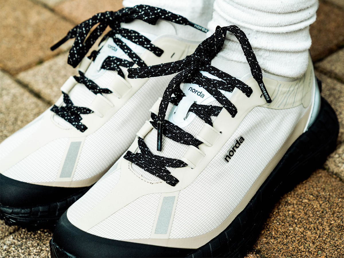 世界初のシームレスな Bio-Dyneema® アッパーと独自の Vibram® ミッドソールおよびソールプレートを採用した 001 は、最も軽量かつ最強の素材で設計されており、意識的なアクティビティでも無意識の快適さを実現する。
