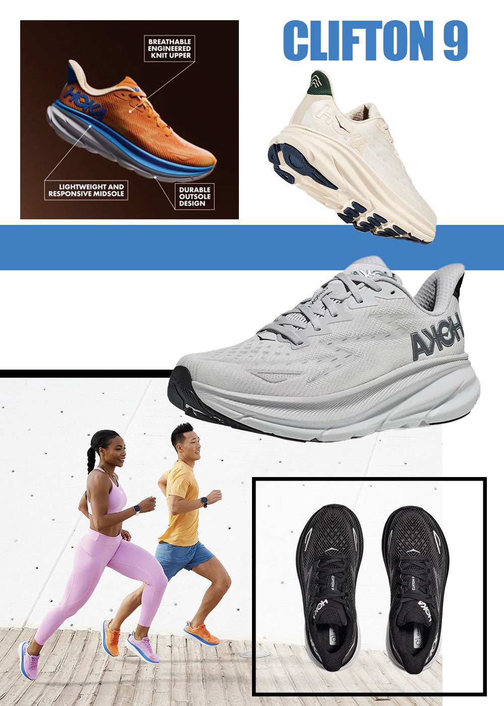 CLIFTON第九代,代表HOKA的經典車型。