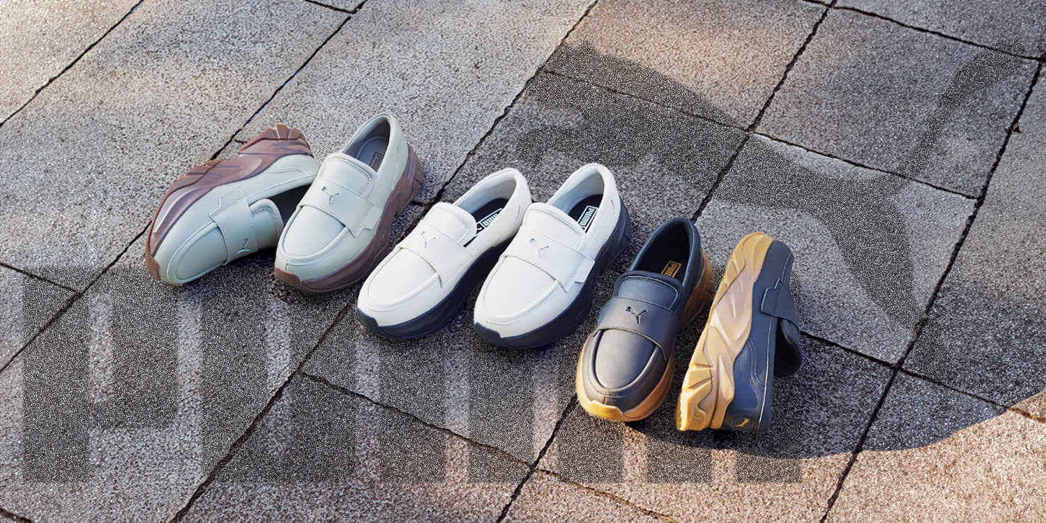 今回のシューズはPUMAの人気モデル、厚底スニーカー「ソフィア」のアッパーをローファーデザインに仕上げた一足。