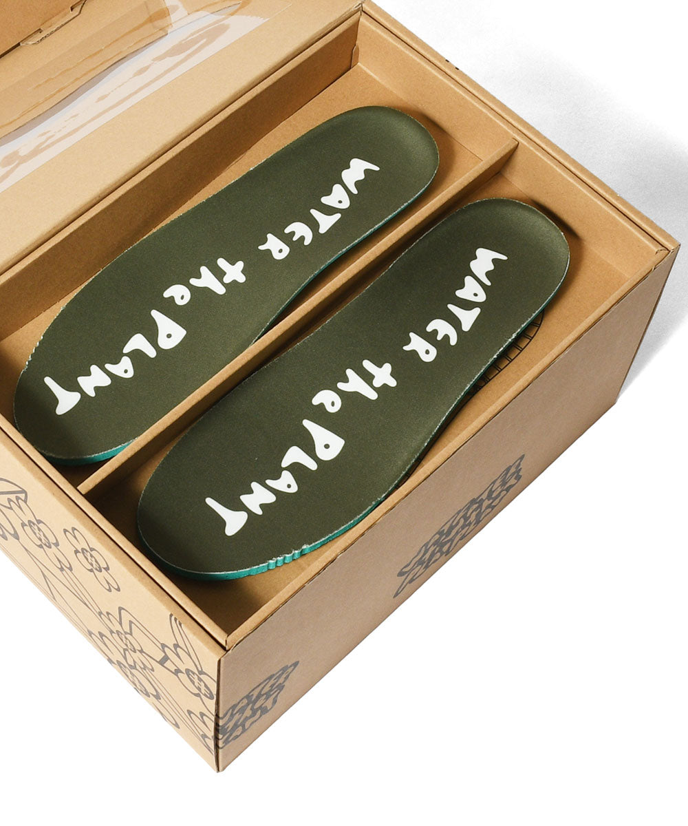 品牌圖標花卉標誌放置在側面,標誌標籤繡在鞋舌上,品牌名稱繡在鞋跟上。