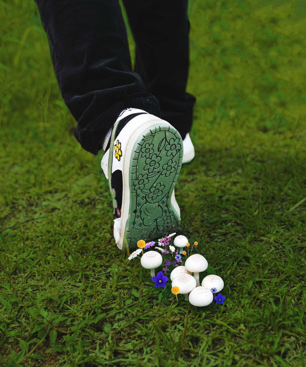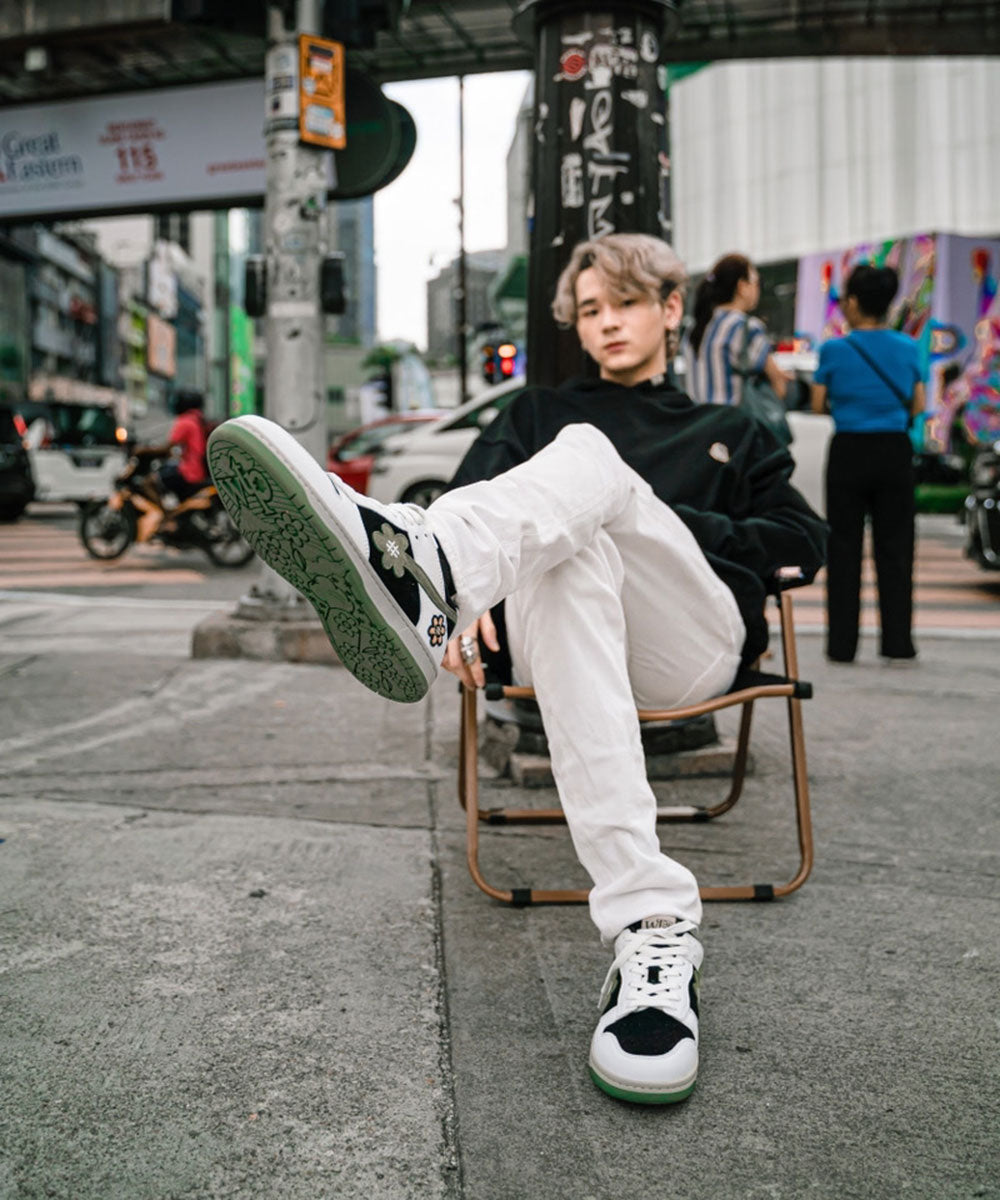 帶有標誌性花朵標誌的運動鞋