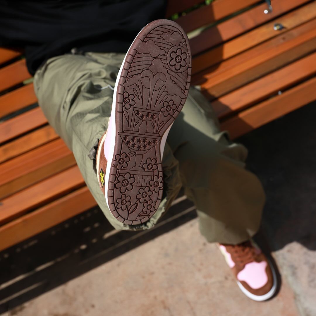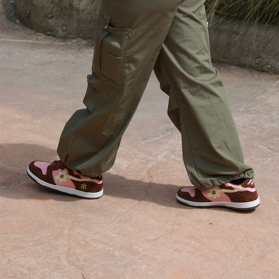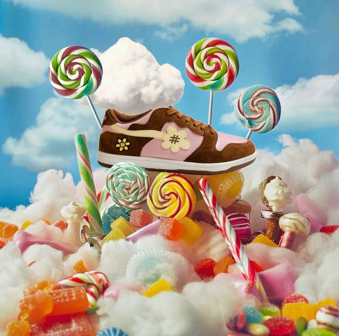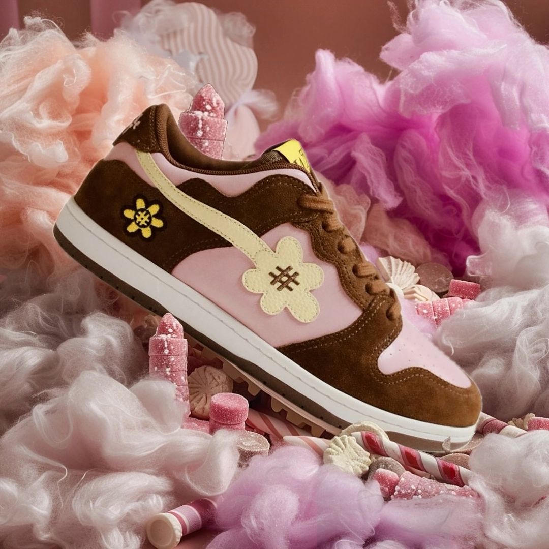 一雙名為「Cotton Candy」的運動鞋,採用俏皮的粉紅色和棕色混合而成。