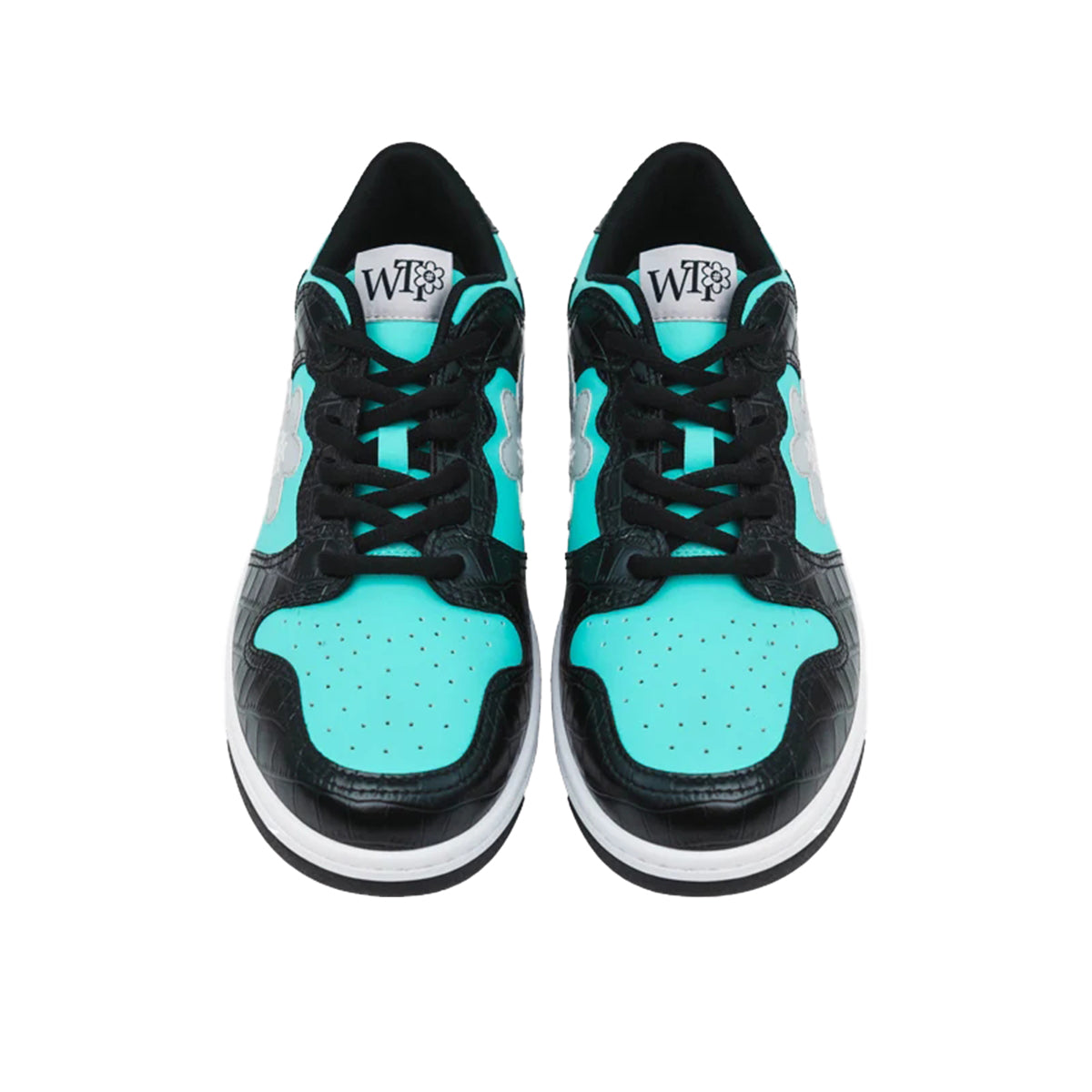 “Diamond” Dream Kicksは、ティファニーブルーのパネルが上質なPUレザーのベースを包み込み、高光沢のブラッククロコ調PUレザーがラグジュアリーな存在感を演出。