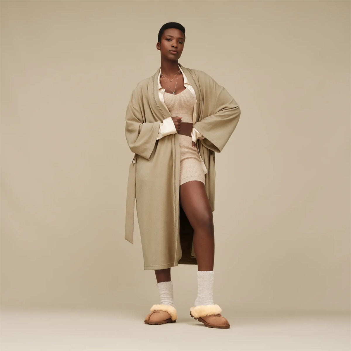 丸みのあるシルエットが人気の屋内外兼用スリッパCoquette(コケット)。ツインフェイスシープスキンのふわふわ感はそのままに、アウトソールを軽量のTreadlite by UGGにアップデート。より一層、履き心地のよさにこだわりました。屋内外で着用いただけます。