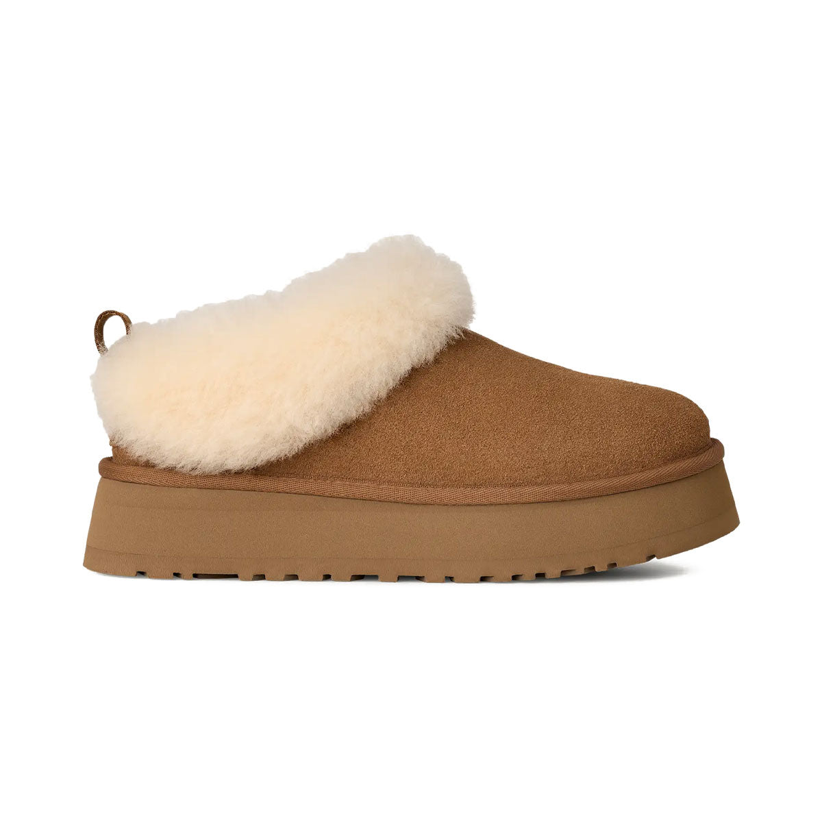 Tazz(タズ)が好きだけど、UGGならではの心地よさをもっと味わいたいときは?Tazzelle(タゼル)がおすすめです。最高にふわふわの屋内外兼用スリッパはスエードで作られ、反発性に優れたサトウキビ由来のEVAを使用した軽量プラットフォームを採用しています。内側にはシープスキンのライニングが施され、そのままカフ部分にまで続いています。ソックスと合わせても、素足で履くこともできます。