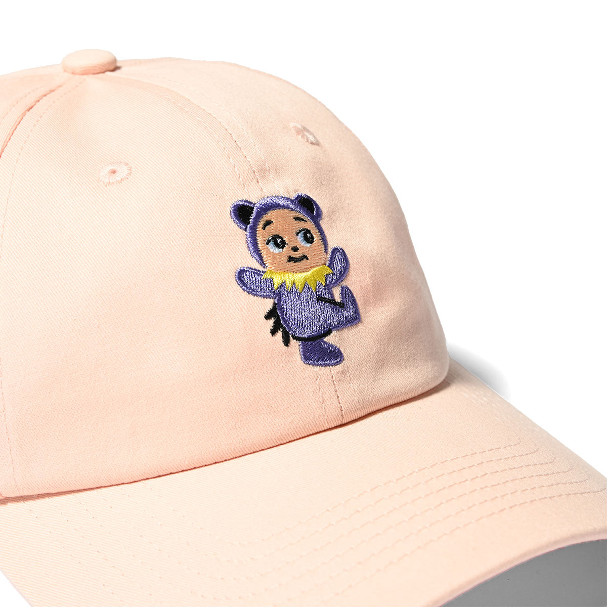 棉質球帽,繡有穿著熊服裝的可愛角色。