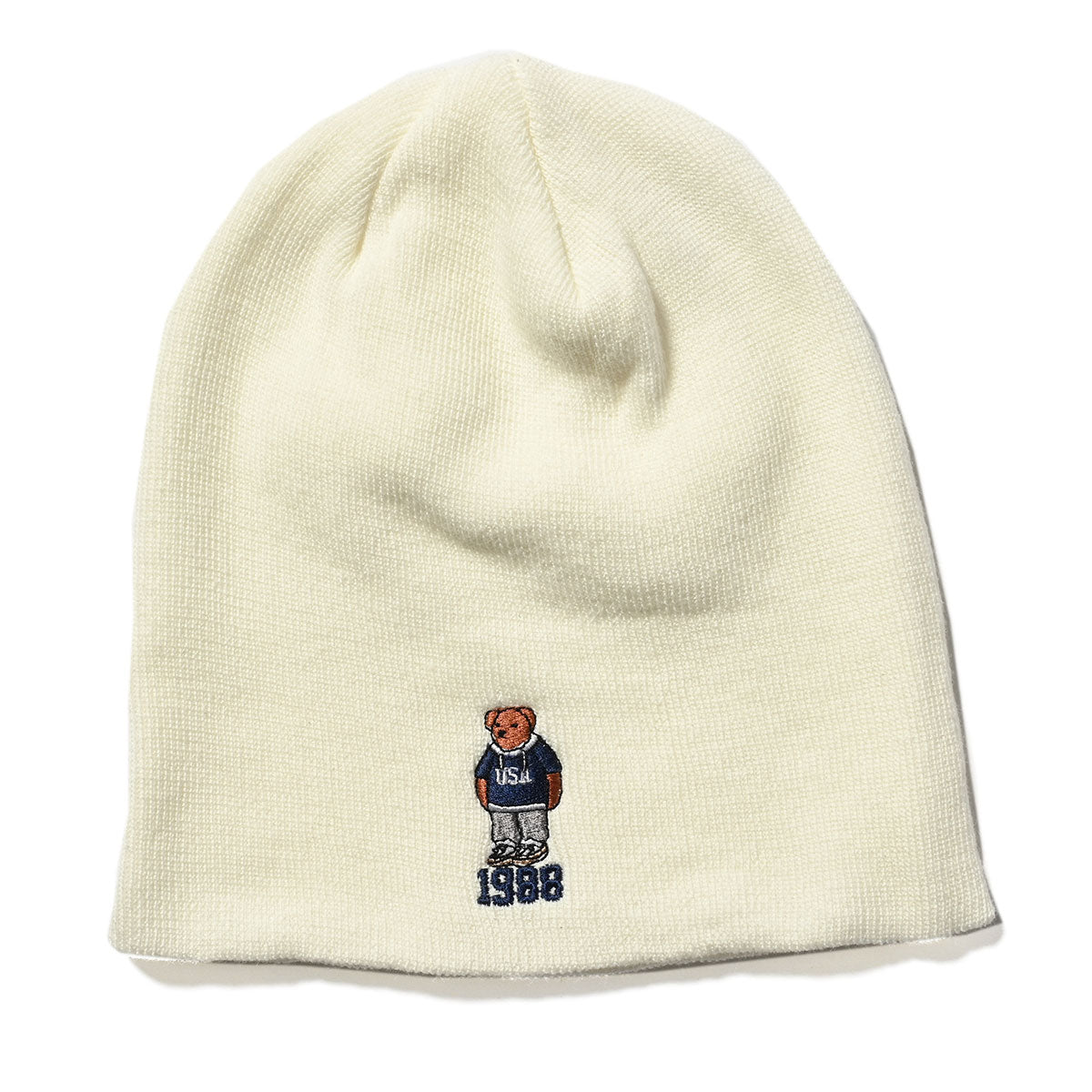 這款無簷小便帽採用標誌性的小熊設計。
